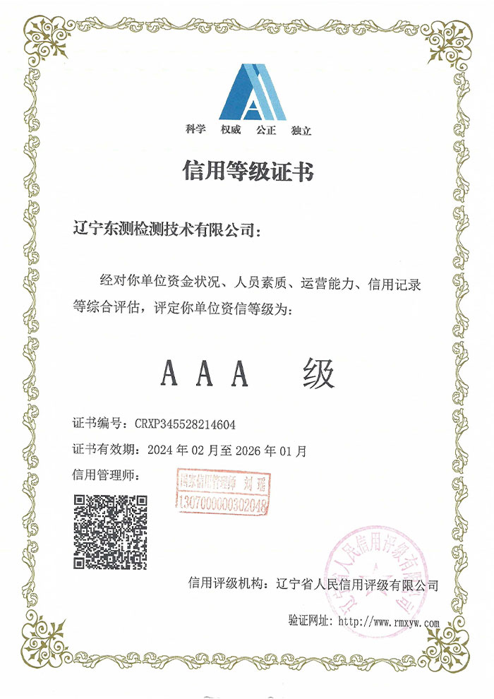 遼寧東測檢測技術有限公司成立于2007年6月21日,專注于為客戶提供計量、檢測以及技術咨詢與培訓的第三方計量檢測機構。遼寧東測檢測技術有限公司通過了中國合格評定國家認可委員會認可(CNAS),獲得檢驗檢測機構資質認定(CMA),憑借著高效的服務網絡、雄厚的技術實力以及全面的業務范圍,本著“科學、公正、準確、真誠”的質量方針,為社會提供優質計量檢測服務,打造國內具有價值的計量技術機構。